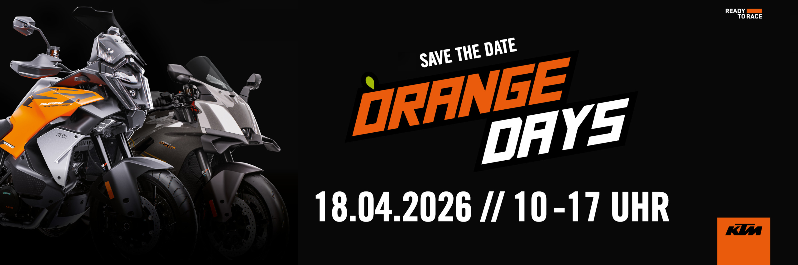 READY TO RACE für den Saisonstart mit den exklusiven KTM Q1 Angeboten. Schüttle den Winter ab und sichere dir race-ready Deals für ausgewählte Motocross-, Enduro-, Travel- und Naked-Modelle – gebaut für Schotter, Asphalt und alles dazwischen.